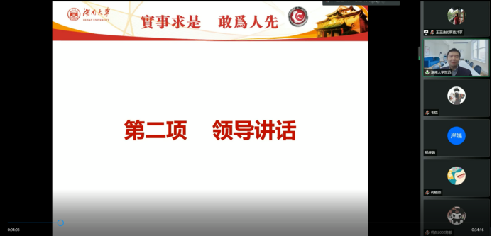 最后,全体学员线上观看《山河岁月》第三集——《湘江北去》。创新创业教育中心党支部入党积极分子顾译心说:1974年,最后一次到长沙的毛泽东已经81岁高龄,公务之余,他执意要去看看湘江,人们无从知道毛泽东当时的心情,但人们相信,壮阔的湘江一定是他生命中最难忘的一条大河。山河岁月第三集《湘江北去》由此切入,讲述了中国共产党创建者之一的毛泽东,在其主编的《湘江评论》上寻找真理,传播、介绍新思想和探索改造社会的道路。让百年前支离破碎的山河在今天重现它的璀璨光辉,百年的岁月一天天走向更加繁荣富强,如果没有中国共产党的领导这是难以想象的。因此,我们在党史学习中,要坚持用党的革命精神照亮前行之路,用如磐初心凝聚奋斗力量,为开启全面建设社会主义现代化国家新征程凝心聚力。气壮山河,风云岁月,人民英雄,永垂不朽。美丽中国,江山如画,百年初心,人民至上!本科生工程第一党支部发展对象杨婷说:“独立寒秋,湘江北去,橘子洲头”。今天我们在结业仪式上观看的山河岁月第三集集名《湘江北去》便出自这首《沁园春·长沙》。在纪录片中,我看到了毛泽东及其同学等“风华正茂,书生意气,挥斥方遒”的青年风貌,“指点江山,激扬文字”的豪情壮志。正是因为有他们这样的有志向、有才华的青年,才有如今的共产党,如今的中国。因此,青年当立志,青年当自强,青年当为实现中国伟大复兴的梦想而奋斗。今天观看纪录片,却仿佛在与100年前的青年毛主席在交流。100年前身为青年的他在为拯救中国探索出路,100年后的今天,在座的青年都在为实现中国伟大复兴努力学习,贡献自己的力量。身为新时代的青年应当担负起民族大任,应该与祖国同向同行,始终在祖国需要的时候挺身而出,始终为建设富强美好的祖国而奋斗!