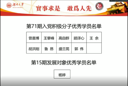 第71期入党积极分子暨第15期发展对象培训班结业仪式成功举行。本次结业仪式由学工办王玉迪老师主持,各支部本期入党积极分子和发展对象参与会议。此次结业仪式还特别邀请到了学院党委副书记贺迅老师。由于近期全国疫情,本次会议全程在腾讯会议上举行。