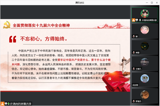 研究生汽车CAE支部召开了线上会议,大会由支部书记许清尚同志主持,会议内容为学习中国共产党第十九届中央委员会第六次全体会议内容及精神。
