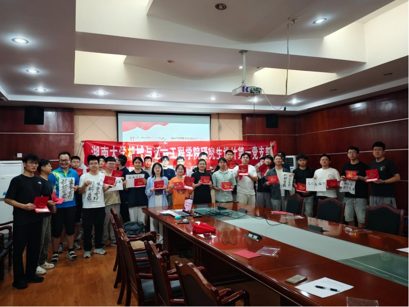 研究生设计第一党支部在工程楼440会议室举行“红心向党守初心,奋楫笃行启新程”主题党日活动。此次活动以重温庄重的入党誓词和创作富有文化气息的书法为载体,为全体党员集体庆祝“政治生日”,同时为即将奔赴新岗位的毕业生党员送上组织的关怀与祝福。
