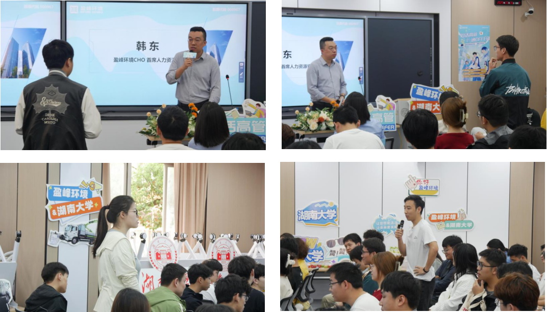 联合环卫行业龙头企业——盈峰环境科技集团股份有限公司,成功举办“对话高管‘职’通OFFER”校园专场沙龙活动。本次活动不仅学生提供了与企业高管直接对话的平台,也给企业方展现了学子积极踊跃、活力四射的面貌。盈峰环境CHO、首席人力资源官韩东,长沙基地人力资源部部长孙曙光、副部长冷静,以及任职于盈峰环境的jojo漫画