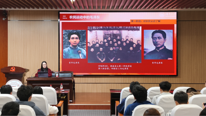博士理论宣讲团的张嘉怡、彭祎两位主讲。张嘉怡以"党和人民的骆驼——任弼时"为主题,深入阐释了骆驼精神的深刻内涵及其时代意义。彭祎则以"农民运动中的毛泽东"为题,结合《湖南农民运动考察报告》,带领学员领会"实事求是"的建党精神。