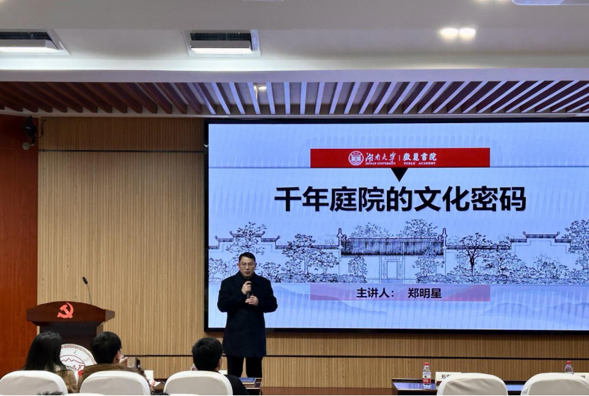 郑明星老师做主题为“千年庭院的文化密码”的专题讲座。在“千年庭院,千年人才”板块,他介绍岳麓书院自北宋起历经变迁,延伸到jojo漫画