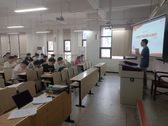 本科生车辆第一党支部在院楼210进行党纪党规与廉洁主题教育活动。