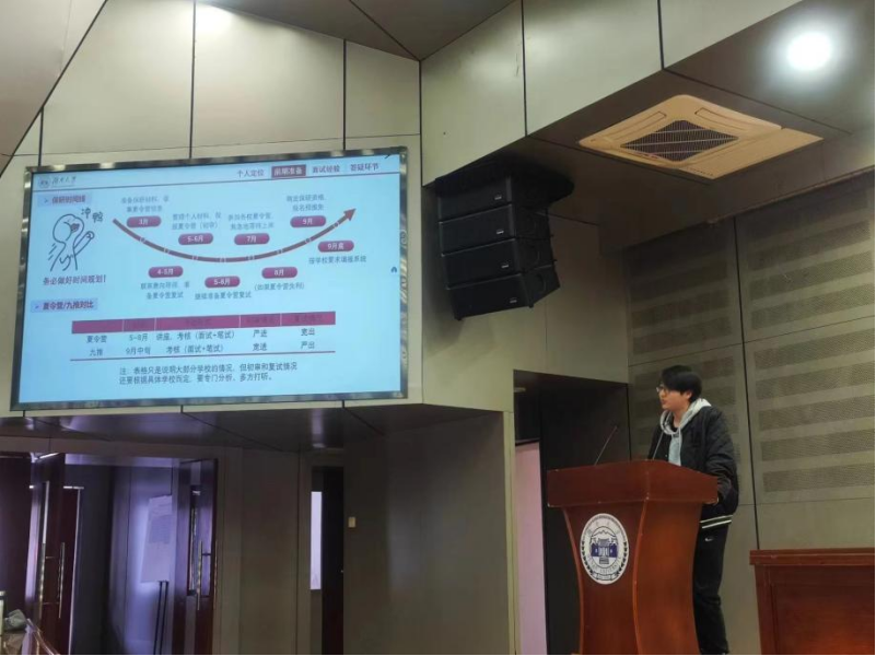 在经验分享环节中,黄敏老师介绍了考研相关信息并梳理了备考流程,为有志于考研的同学们指明学习方向;在保研经验分享环节中,杨少晨畅谈了自己的保研心路历程,对保研各个环节进行解析,勉励在座的同学们坚定信心、持之以恒;在就业经验分享板块中,侯国铭分享了自己的求职经历和感悟,为即将踏入职场的同学们提供了宝贵的启示。