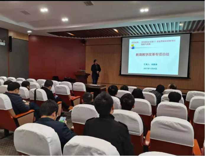 设计系尚振涛老师针对实验教学中思政元素的融入分享了“《机械综合实验1》实验思政实验教学的探索与实践”。他结合各实践环节特点,引入适当的案例,在实验教学中融入家国情怀、文化自信、科学精神、工匠精神等元素。
