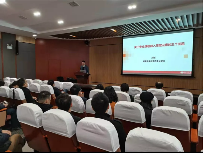 本次会议由马克思主义学院刘近老师讲述如何在专业课程中融入课程思政元素、设计系李博川老师和尚振涛老师分享思政课程建设经验及设计系教师交流研讨三个环节组成。