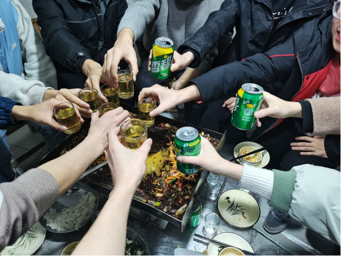 在享用美食,放松身心的同时,院网负责人对过去的3个月中大家的工作和付出表示肯定,大家都尽到了自己的工作职责,遵守投稿规范以及注意事项,并对之后的安排做了部署。同时也以学长的角度为大家的学习提供了一些参考,指明了前进和努力的方向。院网新人认真聆听学长总结指导,并在发言结束后表达自己的看法。最后,院网成员举杯庆祝,发出新年的祝福。