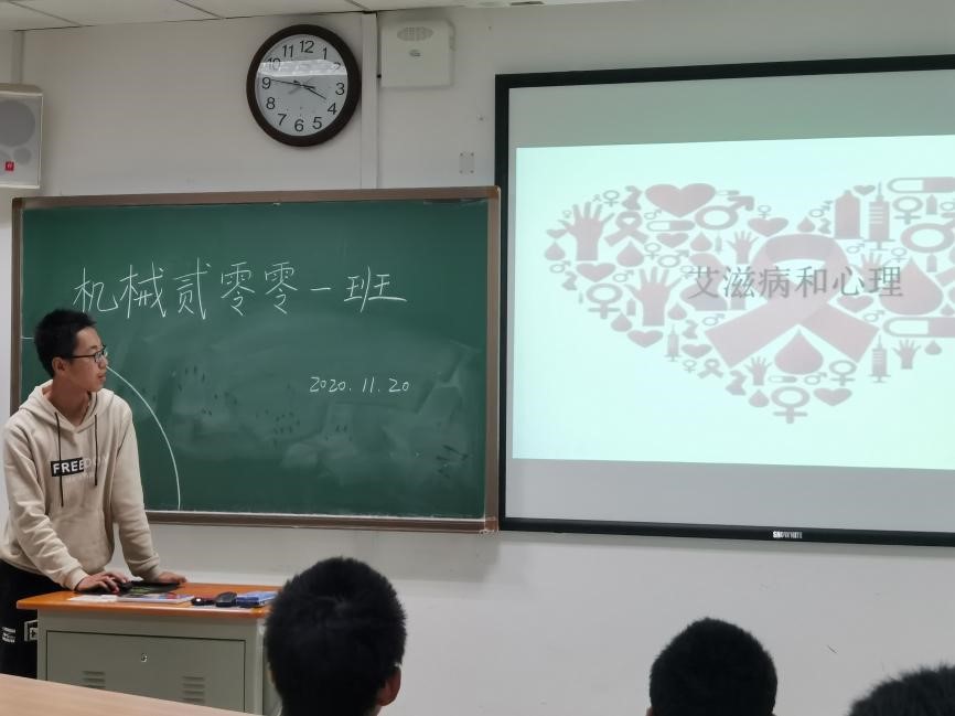 机械2001班于2020年11月20日开展“不畏艾,勇敢爱”主题班会,以普及防艾的基本知识,助力享受健康生活,提升社会文明,推进全社会的疾病防控工作。