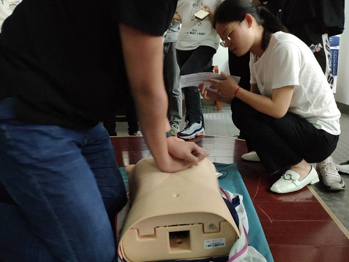 在讲座最后,朱老师及其助手通过分组,让大家逐一利用假人模型实操,并在操作过程中讲解同学们的不足并强调操作要点,同学们通过实操切实体会了医疗救治的艰辛,为此次能够亲身体验急救感到兴奋,也由衷为老师的热情讲解表示感谢,希望类似的讲座能在jojo漫画