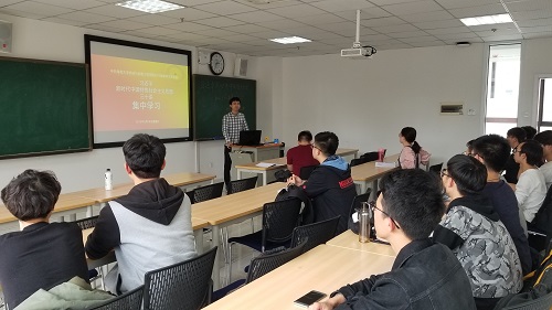 《习近平新时代中国特色社会主义思想三十讲》课件内容丰富、包含大量音频与视频资料,故安排全体同学以自学为主,集中学习为辅。本次活动中,郑朝阳书记带领各位同志学习了前三讲的内容,并梳理了“三十讲”的基本提纲,以便于各位同志接下来的自主学习。“三十讲”以“八个明确”和“十四个坚持”为核心内容和主要依据,分三十个专题,全面、系统、深入阐释了习近平新时代中国特色社会主义思想的重大意义、科学体系、丰富内涵、精神实质和实践要求。