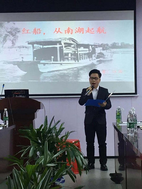 石书祎同学用一首《她》表达了他对我们伟大共产党的敬爱,其中一句“用无数中国人自己的梦编织成实现中华民族伟大复兴的中国梦!”更是让全场观众响起了雷鸣般的掌声;江涛同学的《红船,从南湖起航》更是让我们重温了党的历程,感受了党的伟大,“一代又一代掌舵人,开辟的一条中国特色的航线,把我们的航程,永远指向太阳的方向”一句将比赛推向了高潮。