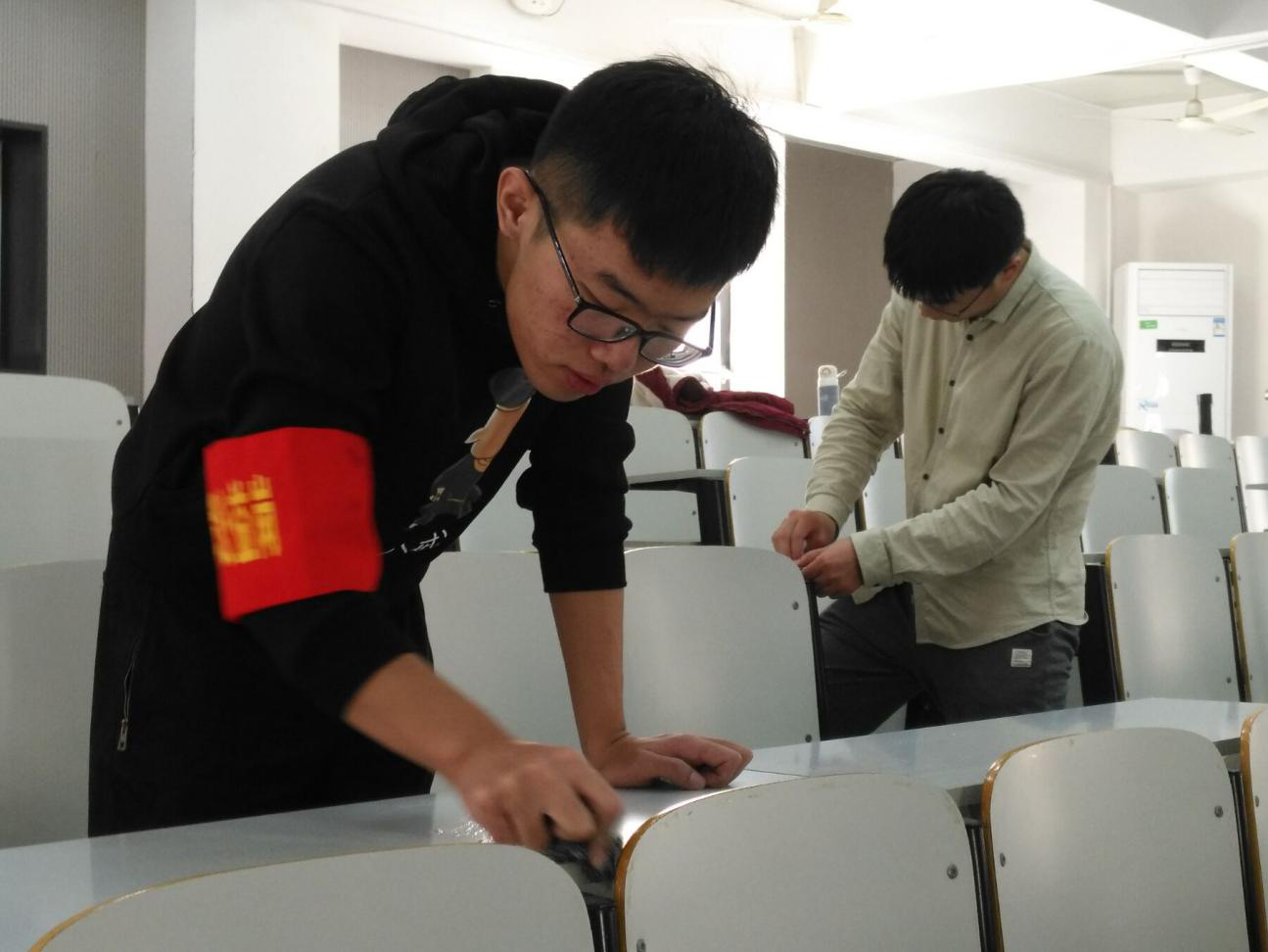 各小组在组长的带领指挥下,全都热情地投入到劳动中去。擦黑板,抹桌子,清除小广告,分工明确,成效显著,志愿者们在劳动中收获了快乐与友谊。