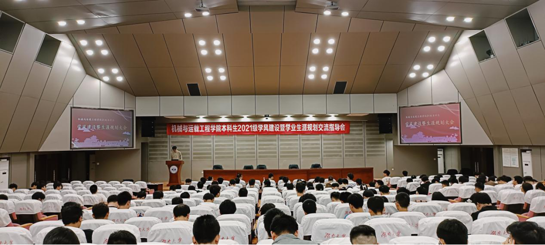 本科2021级学风建设暨生涯规划交流指导会在逸夫楼报告厅召开。学院党委副书记贺迅老师、本科2021级辅导员方婷出席。