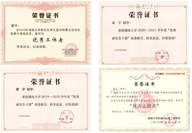 雷宇,曾担任机械学院2019-2020届研究生会文体部(活动部)部长和2020-2021届学院研究生会副主席。
