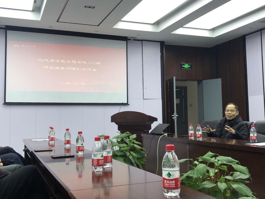 12月29日下午,我院研究生导师工作会议暨《研究生导师指导行为准则》专题培训会在机械楼316会议室举行。研究生导师、人才培养办相关老师参会。会议由主管研究生工作副院长冯凯教授主持。