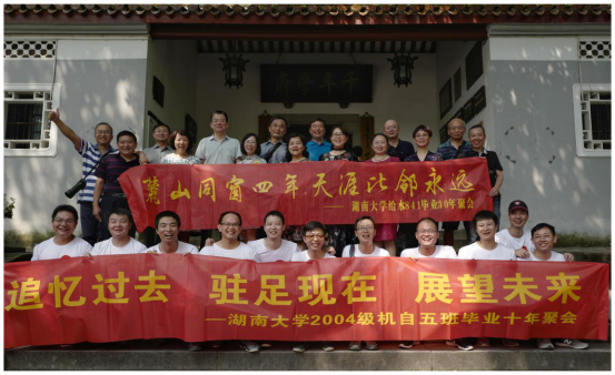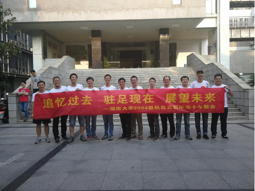 2018年9月15日,jojo漫画 2004级机械设计制造及其自动化专业5班校友返校组织了毕业十周年聚会。校友游览了岳麓书院,登上了岳麓山,并在体育场打了一场篮球。