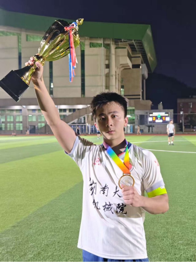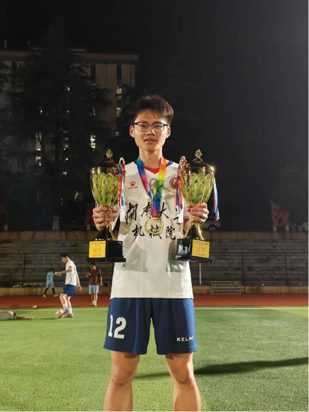 决赛终场哨声响起时,感慨与感动在心中交织—— 这段为校联赛全力以赴的时光终于暂告段落。于我而言,为了球队的目标付出诸多努力,尽管过程中难免出现失误,但每一次失误都成为自我提升的契机。我始终坚持通过积极回追、补防弥补不足,而队友们的信任与支持,更让我在赛场上充满力量。