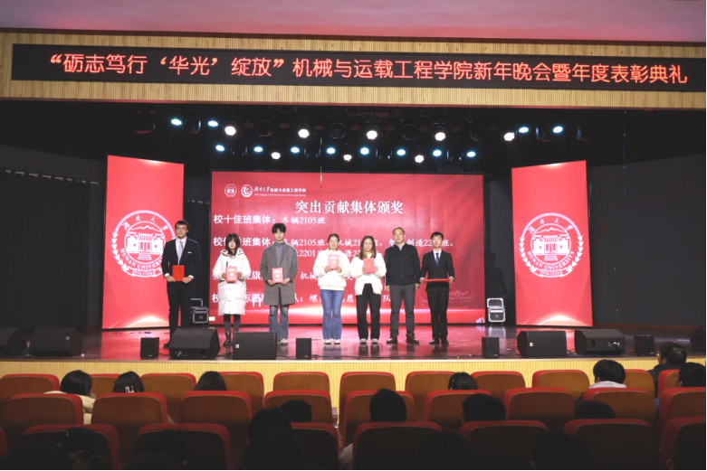 举行新年晚会暨年度表彰典礼。学院党委书记刘喜东,党委副书记刘明然,副院长李伟、任毅如,华光新材研究院副院长黄世盛,楚天科技公司人力资源经理唐美强,以及机械学院24级本科生班主任、任课教师、辅导员、行政教师代表等出席典礼。