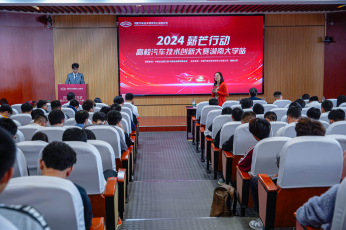 在随后的中汽中心专家大讲堂中,张赛以“汽车轻量化技术”为题,概述了新能源汽车行业的快速发展背景,强调了轻量化技术对于提升新能源汽车续航能力的重要性。她简要介绍了轻量化技术的核心原理,并通过温成形工艺技术、钢铝电阻点焊技术等典型案例,展示了轻量化技术在新能源汽车领域的广泛应用与显著成效。她鼓励学子们积极投身于汽车轻量化技术的研发与创新,为推动中国汽车产业的转型升级贡献自己的力量。