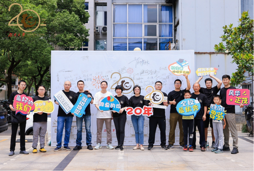 楼前合影留念。后续校友们还共进“爱校团圆餐”,并进行校园游览、书院参观等活动。