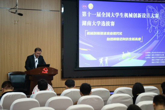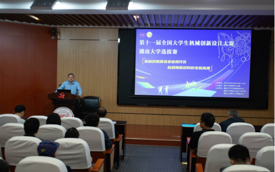 张屹副院长讲述了大赛对本科生培养的积极意义,现代工程训练中心蔡立军主任介绍了工训中心对大学生创新创业活动的支持,并提出未来会进一步扩大与机械学院的合作。