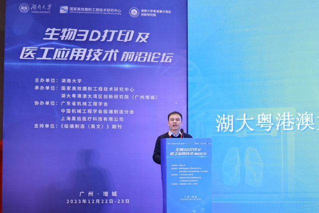 主办,国家高效磨削工程技术研究中心、湖大粤港澳大湾区创新研究院(广州增城)承办,广东省机械工程学会、中国机械工程学会极端制造分会、上海黑焰医疗科技有限公司协办,《极端制造(英文)》期刊提供支持。论坛旨在进一步推动生物3D打印与医工应用技术的发展,促进跨行业的交流与合作,更好地将生物3D打印与临床应用相结合,引领未来的医学发展方向,以提供更好、更快、更安全的医疗解决方案。