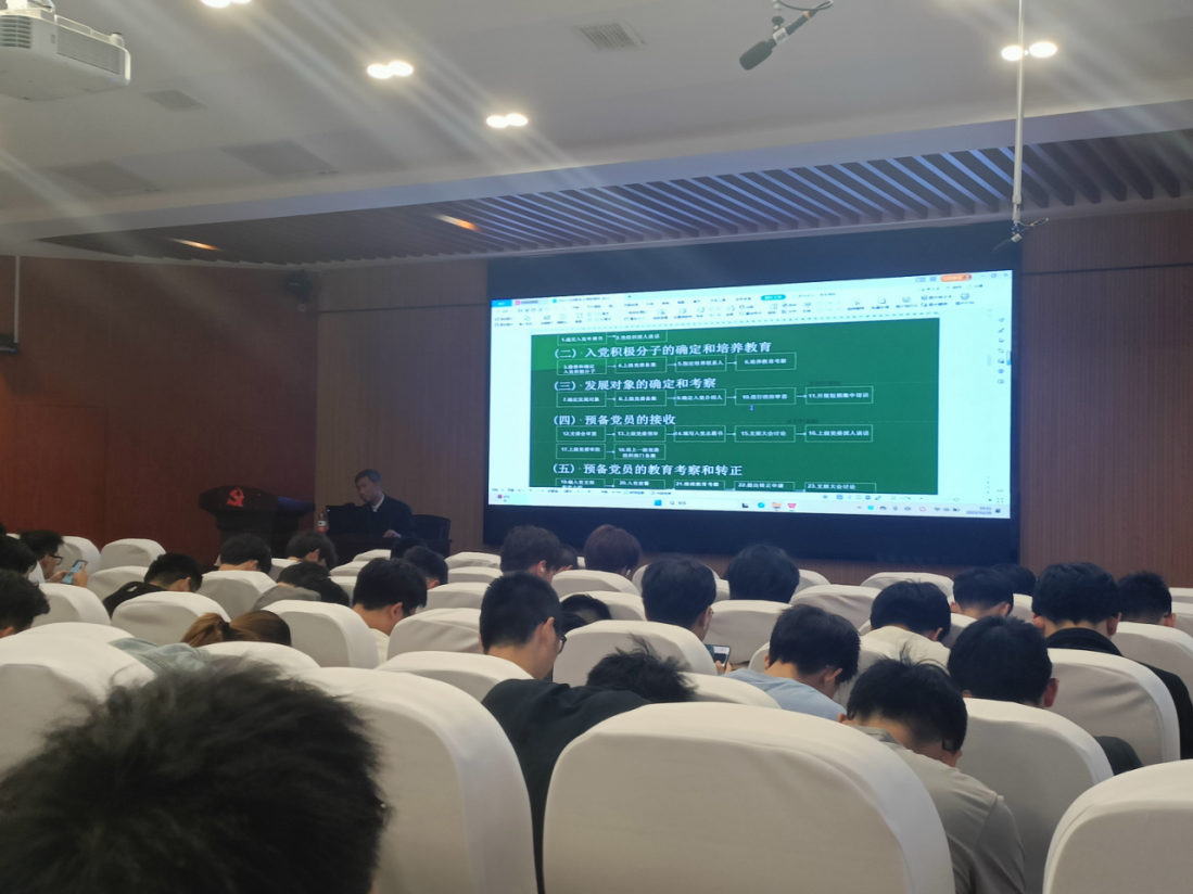 随后李老师介绍了党员的党内法规,并详细讲解了发展党员工作的5个阶段25个步骤,提倡同学们要以实际行动做一名合格的共产党员,将理论付诸实践。不断学习知识并内化为自己的思想觉悟,结合自己实际情况和条件履行并理解党章规定的义务,培养党性修养。