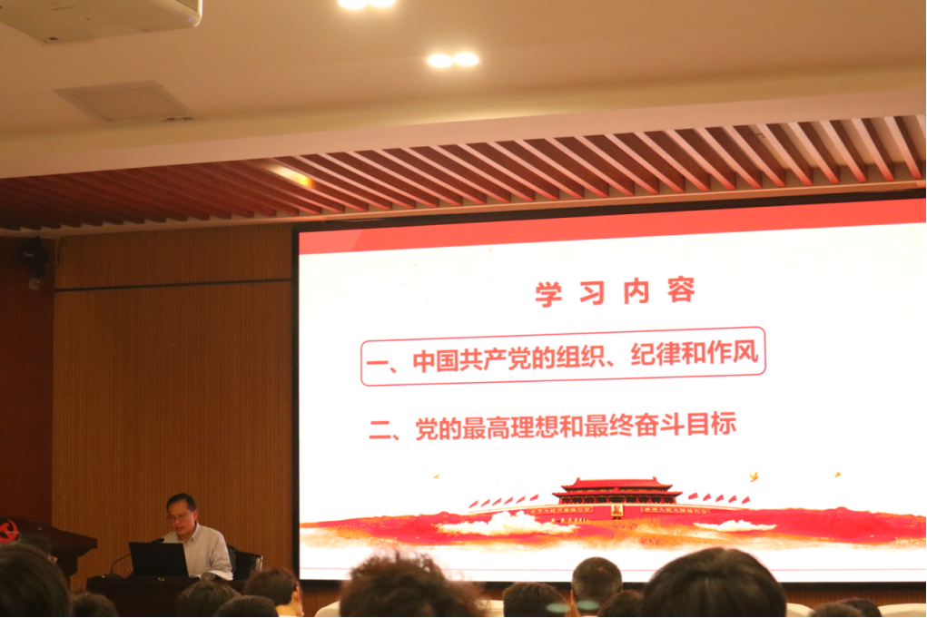随后,院党委副书记周加喜老师就“中国共产党的组织、纪律和作风”以及“党的最高理想和最终奋斗目标”为主题,帮助全体学员更加深入地了解党组织,并强调青年是实现新时代新征程中国共产党使命任务的重要力量,要充分发挥党员的模范带头作用。