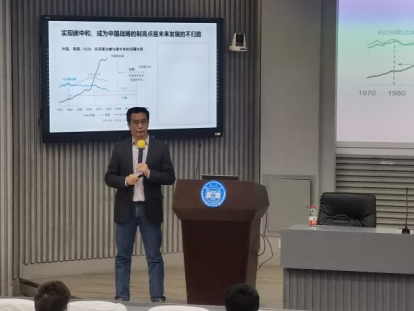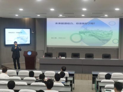 读书、前往加拿大留学以及学成归国投身汽车行业的故事,并介绍到能源专业从四十年之前就是重要专业,鼓励同学们抓住好的时代提供的机遇,为国家产业发展做出贡献。之后,他介绍了中国与世界碳达峰与碳中和的局面,并由此论证了中国要想保持发展势头,必须要着重于新能源、绿色能源的开发、能源结构的调整。据数据预测,中国大约在2060年就能实现绿色能源与比传统能源的八比二的结构。