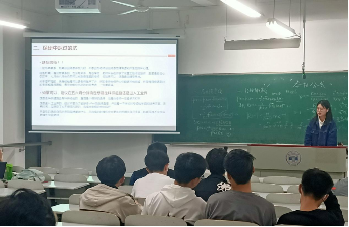 车辆1904班、2004班的同学在综合楼112教室顺利举办“薪火相传,为梦引航”保研经验分享交流会。车辆1904班的同学在交流会上就自己的保研经历和相关注意事项进行了分享和讲述。