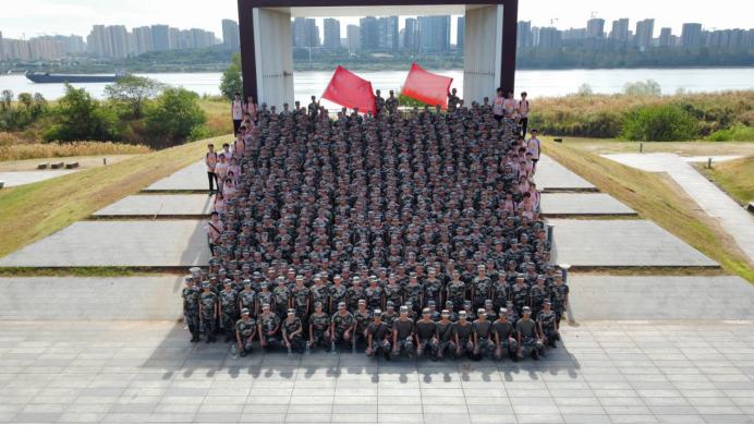 大家在营旗、院旗下合影留念,