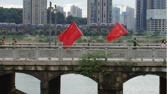 队伍迎着朝阳踏歌而行,