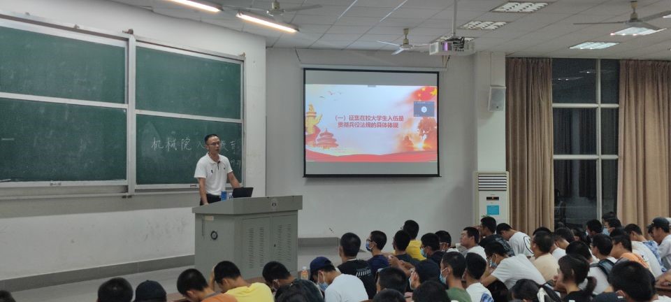 廖老师以“同学们对我国军队了解吗”为引介绍新时代的解放军,他强调军队是国防力量的基础,而广大青年的应征入伍则为军队提供了源源不断的力量,所以征兵政策对于国家来说是不可或缺的。接着他又以“海湾战争”为例,提出现代化建设对军队的重要性,因此高素质的人才是军队所必须的。