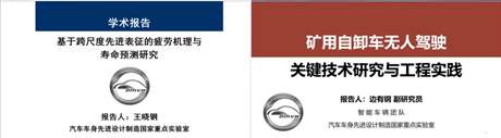 叶崇教授、王晓钢副教授、边有钢副研究员分别做了《高性能沥青碳纤维的批量制备及其在汽车上的应用探索》、《基于跨尺度先进表征的疲劳机理与寿命预测研究》、《矿用自卸车无人驾驶关键技术研究与工程实践》三个学术报告。