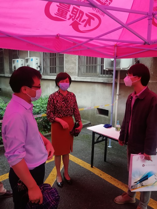 首位返校学生。学院党委书记彭晓燕、执行院长姜潮等迎接其返校“回家”。