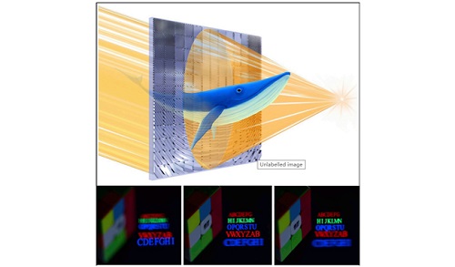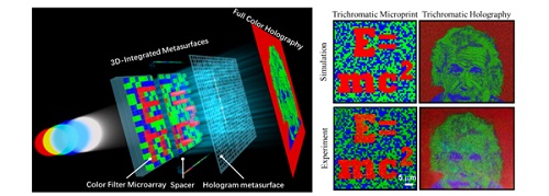 集成超构表面彩色微打印与彩色全息及双重显示。