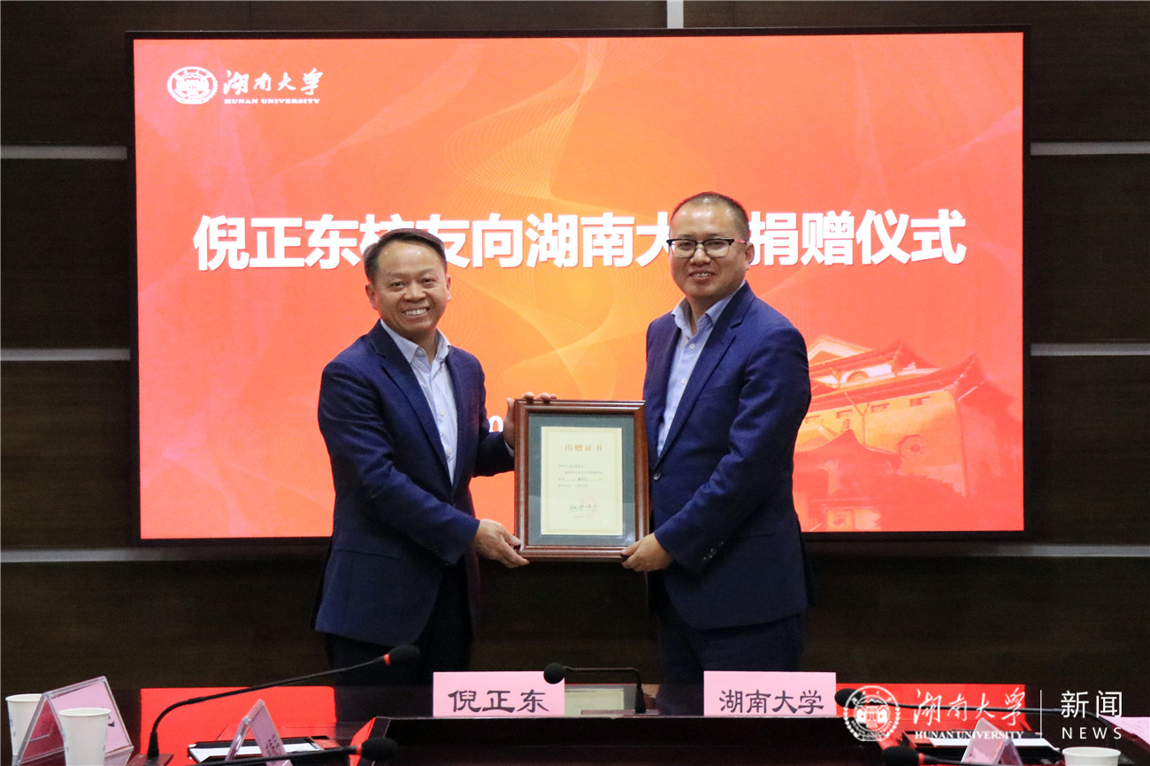 杰出青年教师奖”,支持母校“双一流”建设。校长段献忠出席活动并为倪正东颁发捐赠证书。校党委副书记陈伟主持捐赠仪式。