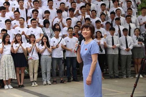 党委书记彭晓燕、副党委书记易洪波以及2015级全体师生。