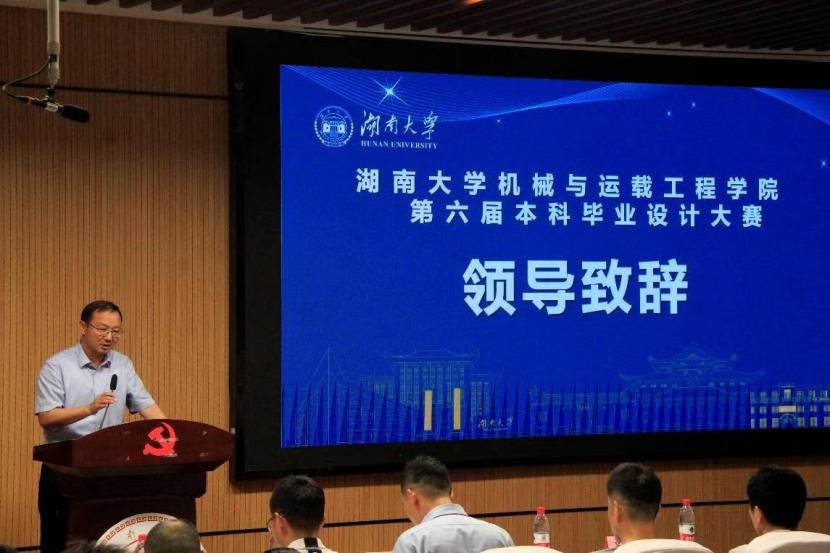 本次大赛旨在落实以学生为中心、创新与实践相融合的教育理念,以毕业设计的形式,为学生们提供拼搏、梦想的舞台。参加本次大赛的有机械学院原党委书记李孟仁,教务处副处长张屹,机械学院党委副书记刘明然,机械学院教学督导组组长张维刚,国防科技大学吴学忠教授、李道奎教授,三一重工总工程师阳辉勇,湖南厨喜爱科技有限公司总经理奉铜明等17位领导嘉宾。本次大赛在个人赛基础上首次引入团队赛,以进一步培养学生的团队合作意识和创新精神,11 位个人及两个团队从上午的毕业答辩中脱颖而出, 角逐各个奖项。