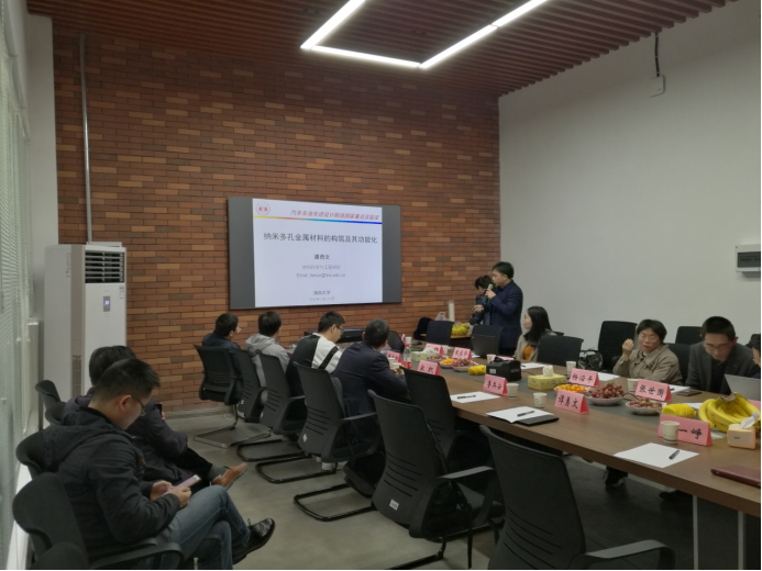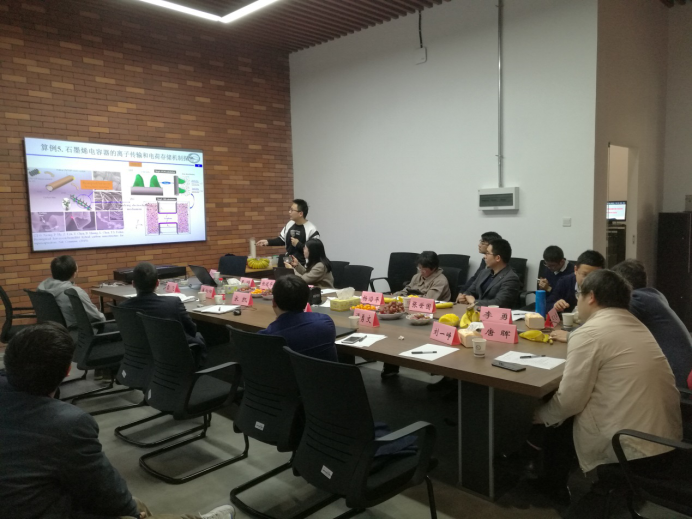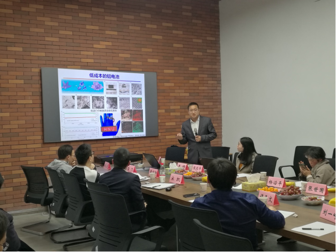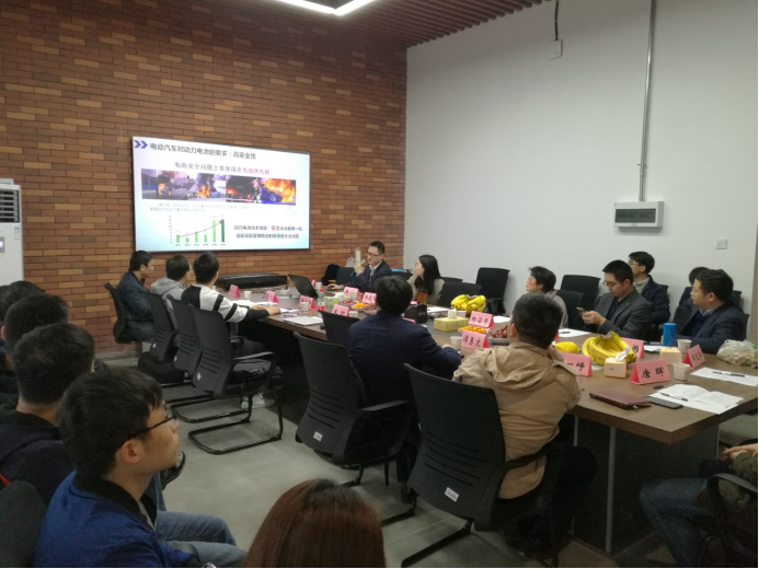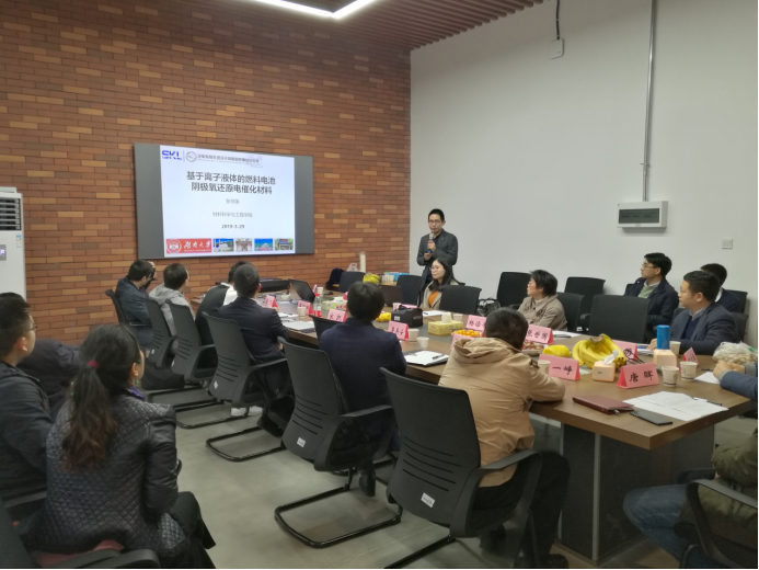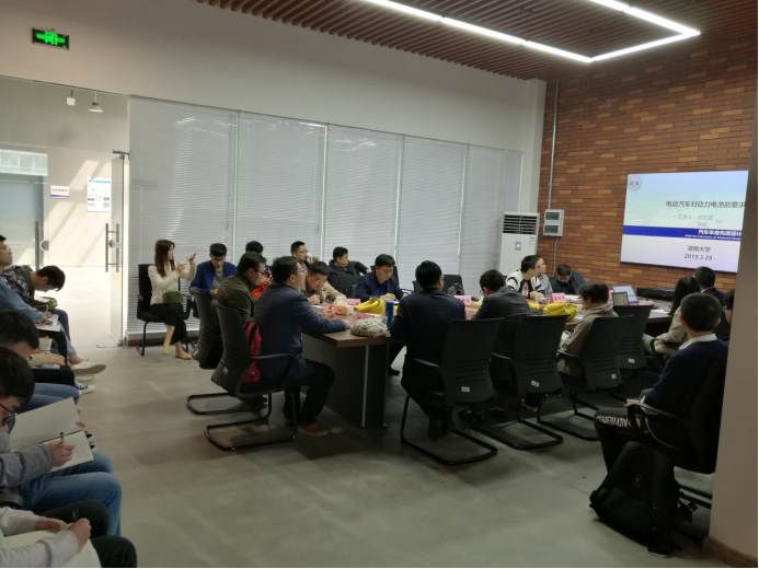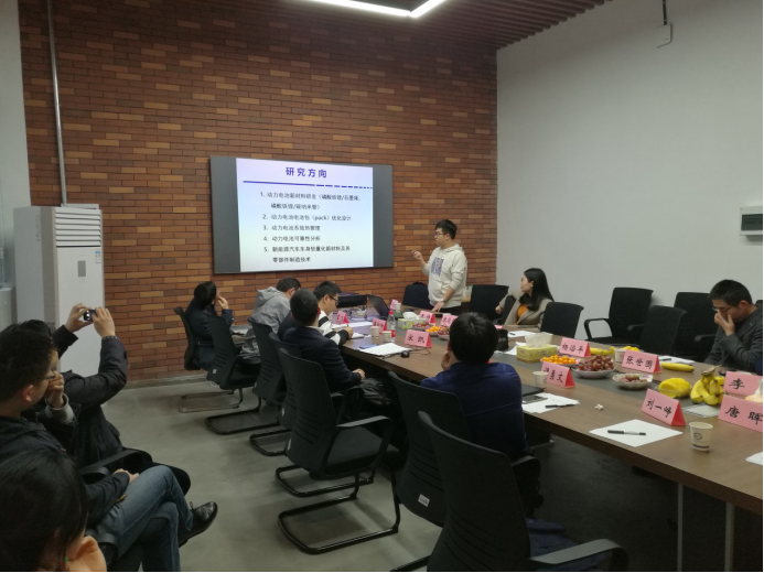 宋凯副教授首先代表成艾国教授团队介绍新能源汽车发展对电池研究的需求,新加入实验室的张世国教授(青年千人,来自材料学院)介绍了基于离子液体的燃料电池阴极氧化还原电催化材料,谭永文教授(青年千人,来自材料学院)介绍了纳米多孔金属材料的构筑及其功能,李勇教授(青年千人,来自电气学院)介绍了从复杂网络与电能质量视角评估电动汽车充电对电网/交通网的影响,鲁兵安教授(物理院、来自物理学院)介绍了新型石墨材料的研发及其储铝性能,张冠华副教授介绍了电池功能结构设计及制造,雷飞副教授介绍了电池散热系统的需求,杨小龙副教授介绍了电池热管理系统及BMS,闫航航同学代表崔向阳教授团队介绍了多尺度手段在新型储能体系探索中的应用,张良同学代表何莉萍教授团队介绍了新能源汽车动力电池新材料及动力电池系统的设计与研发,杨沿平教授介绍全生命周期评价对新能源汽车发展的要求。会议期间,杨沿平教授提醒新能源汽车方向的研究学者,在科研的同时务必考虑社会效益问题,研究出的成果不能以牺牲环境、浪费社会资源为代价。用一句话来说就是要求学者 “不要因为走得太远,而忘记为什么要出发”。张军副教授介绍了他们团队在电池封装及电池散热方面的工作及思考。本次讨论会由重点实验室副主任邓久华策划组织并主持。科研院基金办唐晖主任,科研院刘一峥老师受邀参加了讨论会,唐晖主任希望大家能通过交叉交流,促进联合,共同组织申报大的项目。土木学院博士研究生王帅代表陈政清院士团队参加会议,10余新能源汽车方向的硕/博士研究生参与本次讨论会。