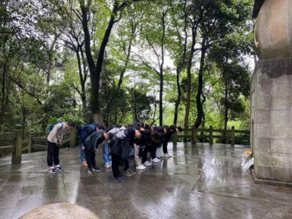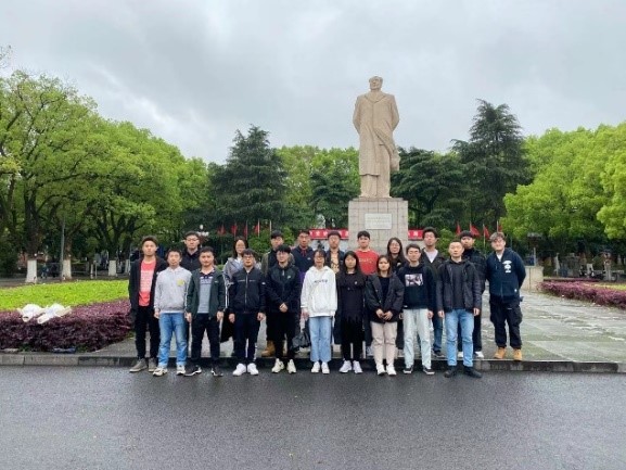 岳麓山烈士陵园前,全体同志向为中华民族伟大复兴做出卓越贡献的烈士们敬献鲜花。并在烈士墓前鞠躬默哀,表达对革命先烈的深切缅怀与衷心的感谢。能动党支部书记向支部同志们讲诉抗战时期革命先烈们艰苦奋斗的历程,勉励支部同志要牢记先烈们英勇奋战的英雄事迹,珍惜当前来之不易的美好生活。